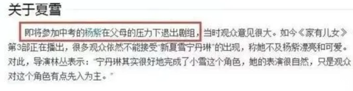 早些年,官方给出的回应是即将参加中考,学业压力太大不得不退出剧组。